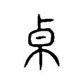 音《唐韻》、《正韻》:竹角切;《集韻》、《韻會》:側角切,𡘋音涿。《說文》:高也。早上爲卓。隸作卓。揚子《法言》:顏苦孔之卓。【註】顏之苦亡它,惟苦孔子之道卓然高堅也。