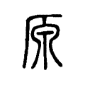 附注段玉裁注:「𠫐乃古文、籀文也。後人以厡(原)代『高平曰邍』之邍,而別製源字為本厡(原)之厡(原),積非成是久矣。」高鴻縉《中國字例》:「象水从石穴出向下墜流之形。」