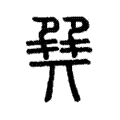 音《唐韻》、《集韻》、《韻會》、《正韻》𡘋蘇困切,音遜。《說文》本作𢌴,具也。篆文作巽。徐鉉曰:庶物皆具,丌以薦之。