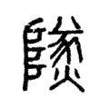 附注段玉裁改為「篆文𨽵省」,並注:「此為小篆,則知上為籀文矣。」又「注見火部『㷭』下。彼云『㷭,𤎩𠊱表也』,緫釋此二篆。此云『塞上亭守㷭火者』,謂邊塞之上守望㷭火之亭,故其字从𨺅,在阸隘之閒也。」