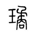 琼,红玉。字形采用“玉”作边旁,“敻”作声旁。“璚”,这是“瓊”的异体字,字形采用“矞”作边旁,写作“璚”。“瓗”, 这是“瓊”的异体字,字形采用“巂”作边旁,写作“瓗”。“琁”,这也是“瓊”的异体字,字形用省略了“方”的“旋”作边旁。