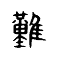 附注段玉裁注:「今難易字皆作此。」按:段玉裁、王筠等注均楷作「𪄿」。「𪄿」即「難」的古文。《字彙・鳥部》:「𪄿,古文難字。」