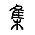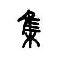 义又,《玉篇》:合也。《廣韻》:聚也、會也、同「也」。《史記・秦始皇紀》:天下雲集響應。《前漢・鼂錯傳》:動靜不集。【註】師古曰:集,齊也。《史記・司馬相如傳》:鱗集仰流。