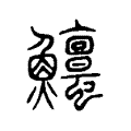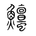 音又,《集韻》、《正韻》𡘋上演切,音善 —— 同「鱓」。《後漢・楊震傳》:有冠雀銜三鱣魚,飛集講堂前,都講取魚進曰:虵鱣者,卿大夫服之象也。【註】《續漢書》謝承書鱣皆作鱓。然則鱣、鱓古字通也。《顏氏家訓》:《後漢書》云鸛雀銜三鱓魚,多假借爲鱣鮪之鱣,俗之學士因謂之鱣魚。【按】魏武《四時食制》:鱣魚大如五斗匳,長一丈。郭璞註《爾雅》:鱣長二三丈,安有鸛雀能勝一者,况三頭乎。鱣又純灰色無文章也。鱓魚,長者不過三尺,大者不過三指,黃地黑文,故都講云:虵鱣,卿大夫服之象也。《續漢書》及《搜神記》亦說此事,皆作鱓字。孫卿云「魚鱉鰌鱣」及韓非《說苑》,皆曰鱣似蛇,𡘋作鱣字。假鱣字爲鱓字,其來久矣。