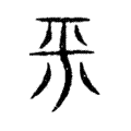 」。篆文形變為從亏、八。從亏,亏字從丂、從一,表示語氣平和而舒緩;從八,表示語氣均勻平順的宣散出去。隸書隸變而作「平」字,楷書承此字形而來。在六書中屬於異文會意。