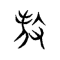 」人形上作雙乂;籀文省作單乂,當上承戰國文字,下啟篆文。篆文構形承襲戰國秦文字「